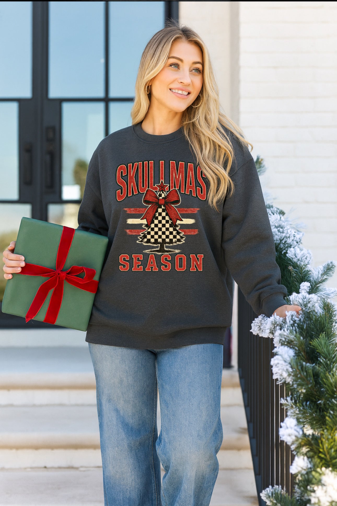 „ZarahSkull" Sweater heather grey "Tis the Skulli Season"