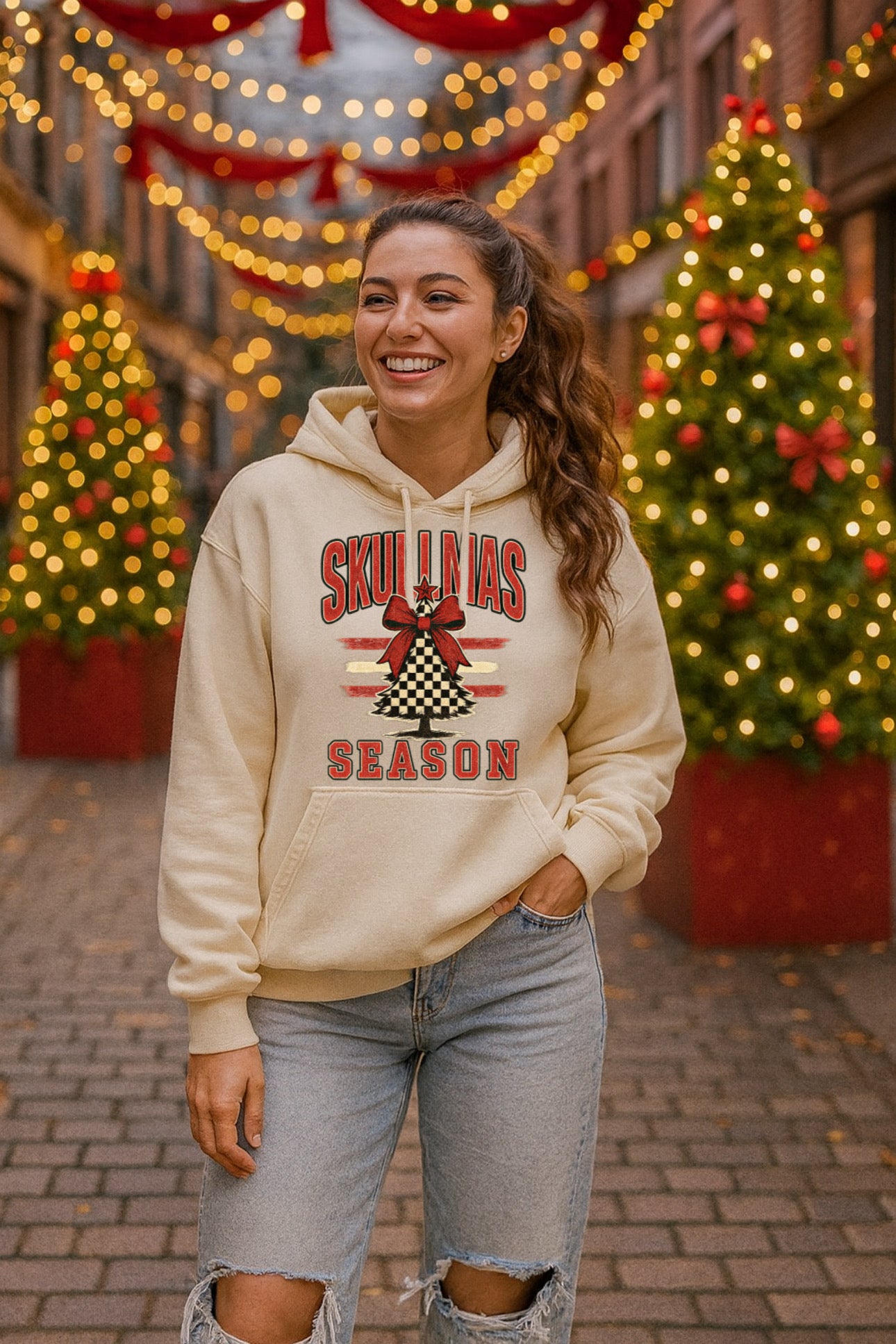 „ZarahSkull" Hoodie white Sand "Skullmas Season"