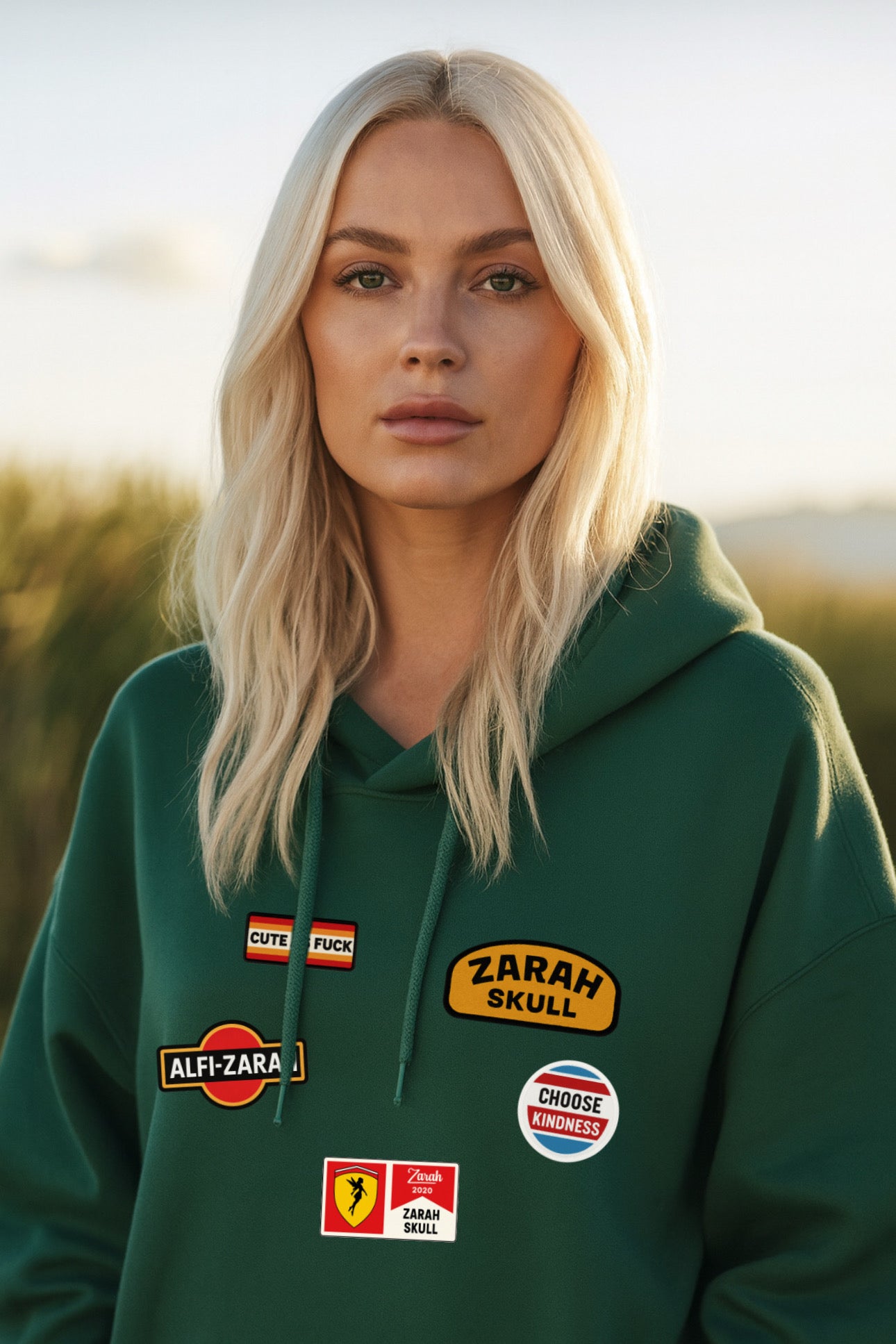 „ZarahSkull" Hoodie bottle green "Patch"