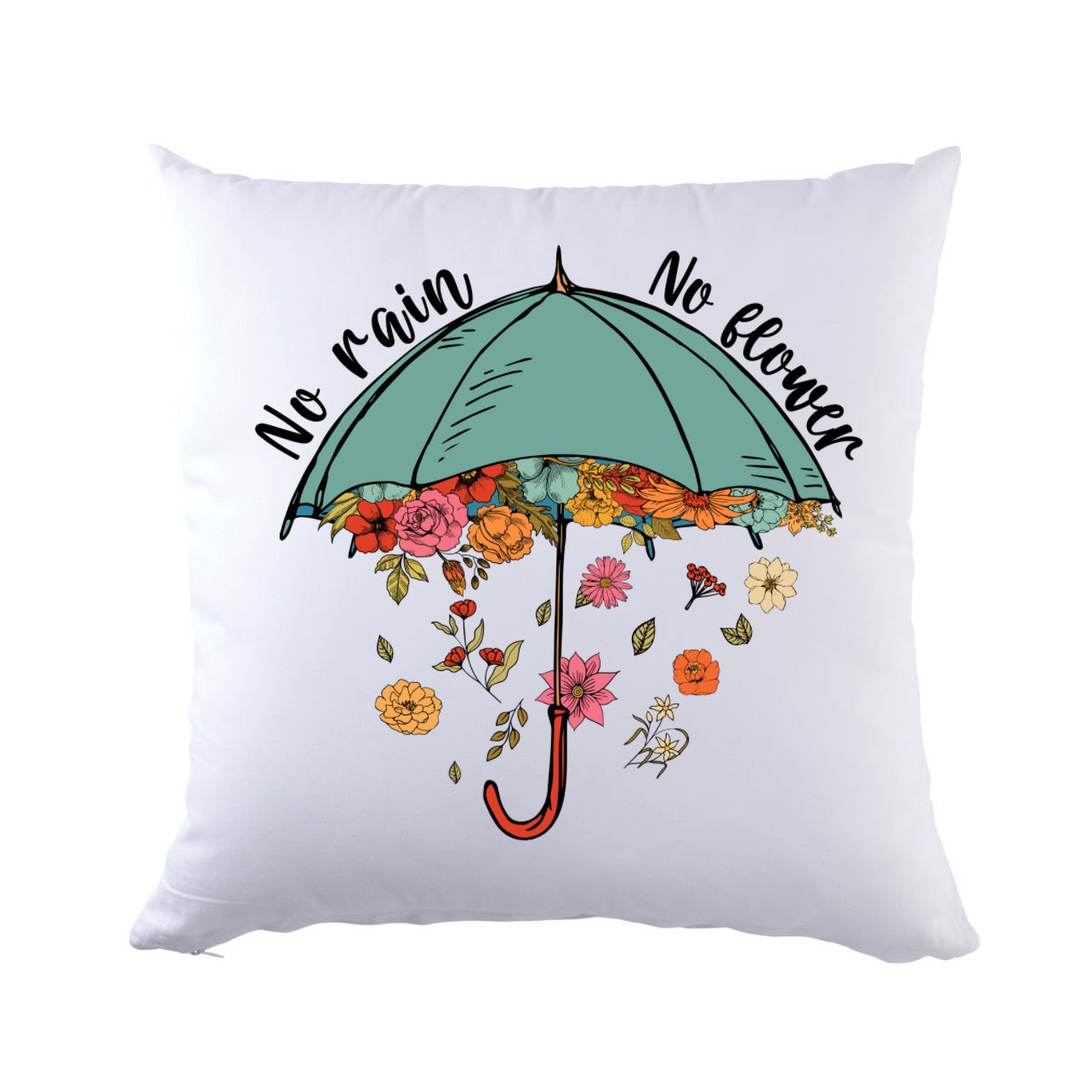 "ZarahSkull"- cushion cover white "no rain, no flower"