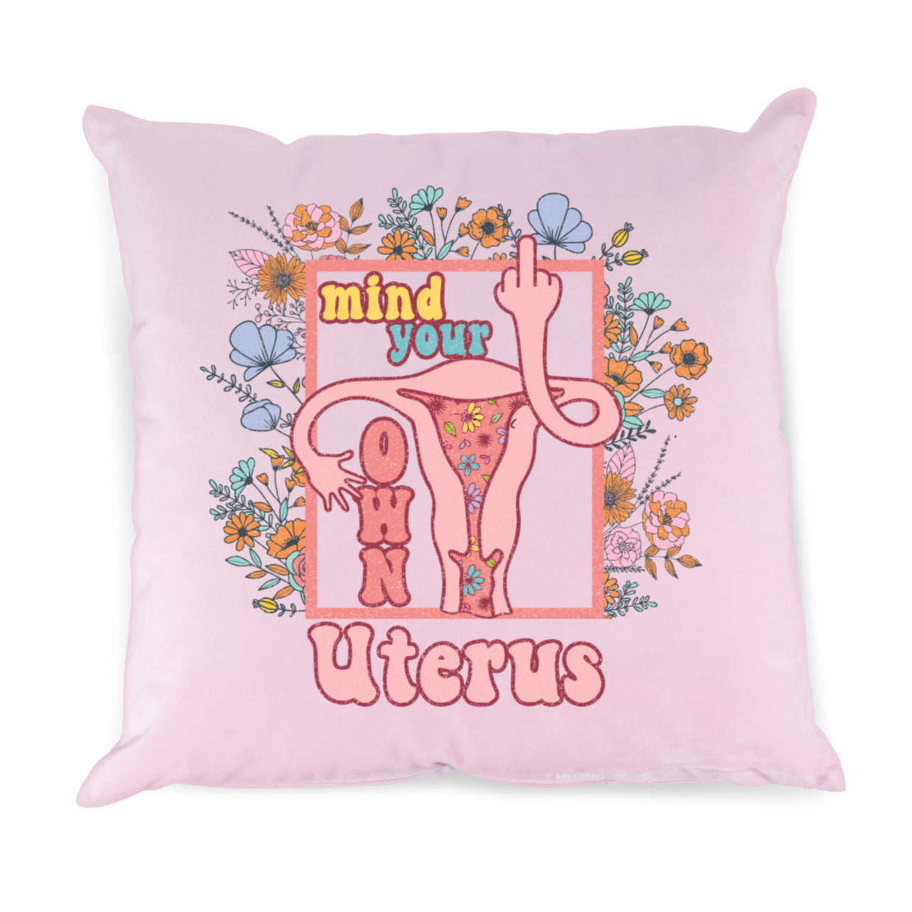 "ZarahSkull"- pillowcase pink "mind your own uterus"